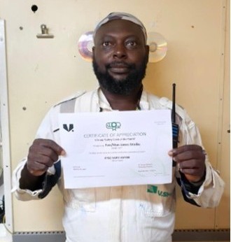 - Fireman James Shibu of NUIM ANTAN (Offshore Cluster), exceptionally selected by the V.Group Executive Team for his proactive intervention during a confined space entry, which most likely prevented a serious incident, and
