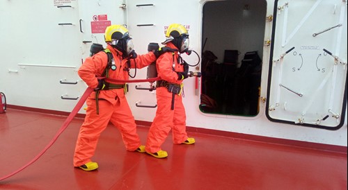 Safety is, of course, paramount. The presence of a camera during my visit made the crew especially conscious of procedures as they went about their work. They had just received new coveralls in their distinctive orange, while the officers wore crisp white versions of the STOP flame-resistant suits. This wasn’t quite in line with the original concept of a single uniform colour for all crew, but hierarchy onboard is important, and visually distinguishing roles is natural.